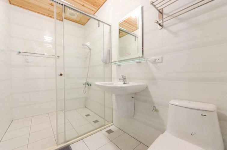 В номере вы найдёте душ, телевизор и тапочки. Оснащение зависит от выбранной категории номера.