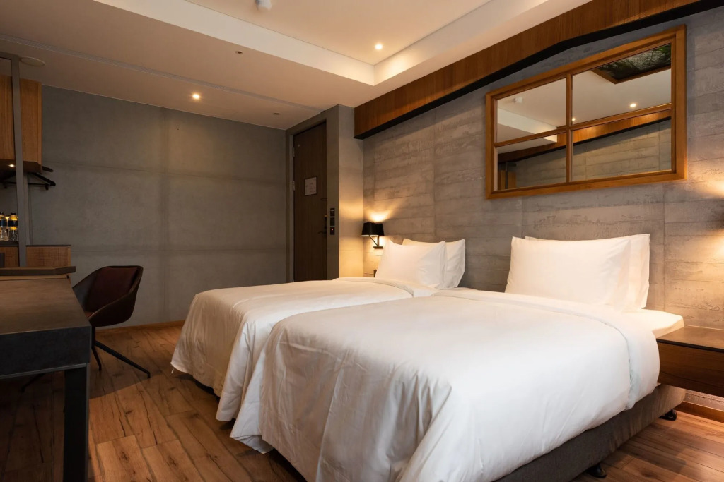 Номер уютно обставлен и оснащён необходимым, чтобы отдохнуть после долгого и насыщенного дня. Имеются душ, телевизор, халат и тапочки. Оснащение зависит от выбранной категории номера.