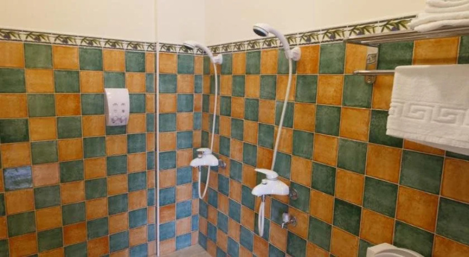 В номере вы найдёте душ, телевизор и тапочки. Оснащение зависит от выбранной категории номера.