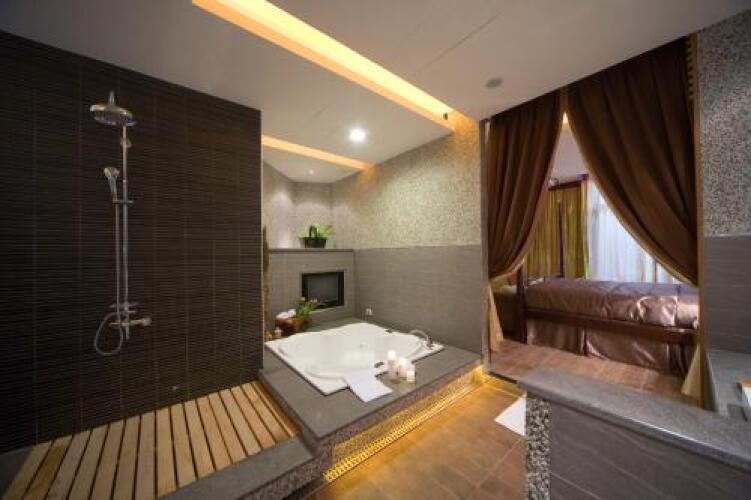 В номере вы найдёте душ, телевизор и тапочки. Оснащение зависит от выбранной категории номера.