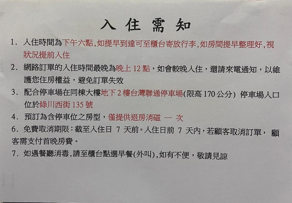 В связи с правительственными постановлениями, направленными на сокращение отходов, начиная с 1 января 2025 года, в отелях на Тайване будет ограничено использование одноразовых принадлежностей (таких как шапочка для душа, расчёска, зубная щётка, зубная паста, бритва, крем для бритья и т. д.). Гостям рекомендуется привозить свои собственные принадлежности.