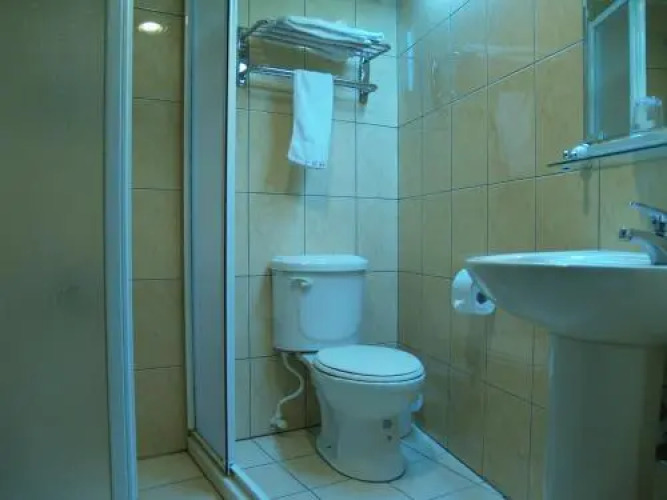 В номере вы найдёте душ, телевизор и тапочки. Оснащение зависит от выбранной категории номера.