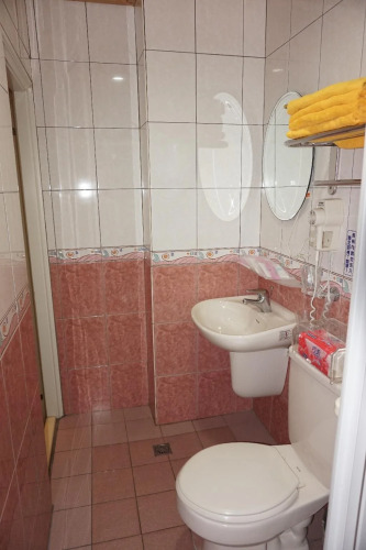 В номере вы найдёте душ, телевизор и тапочки. Оснащение зависит от выбранной категории номера.