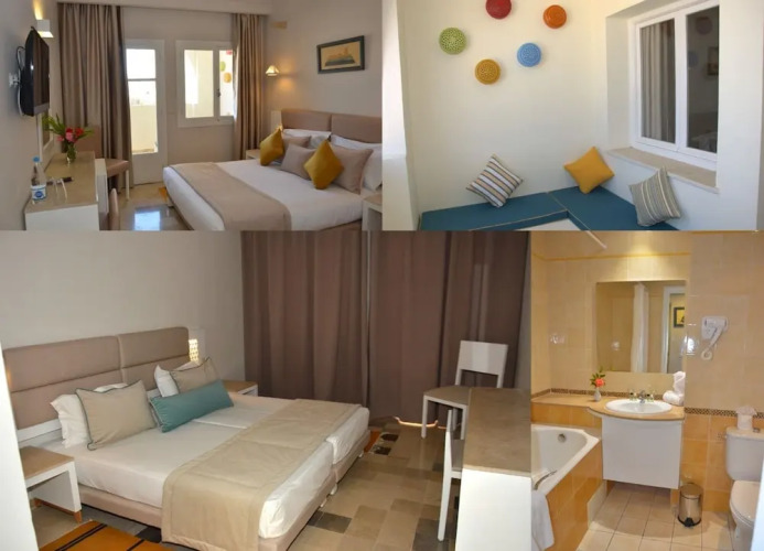 Отель Djerba Sun Beach Hotel and Spa 3 звезды, адрес на карте Мезрая, Zone touristique Sidi Mehrez djerba, с характеристиками номеров и доступностью онлайн бронирования на сайте vashotel.ru , стоимость проживания и удобства.