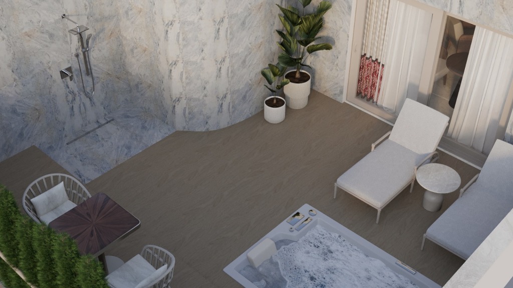 В номере вы найдёте душ, телевизор и халат. Оснащение зависит от выбранной категории номера.