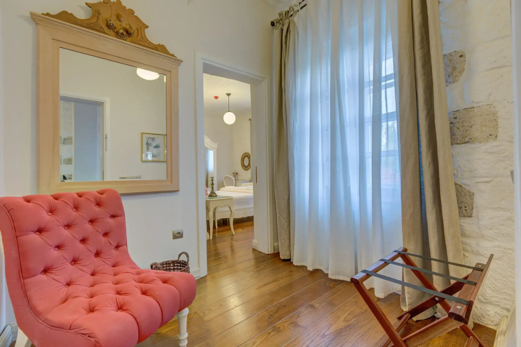 Отель Fehmi Bey Alacati Butik Otel - Special Class, адрес на карте Алакати, Alaçati Mah., 12069 Sk. No: 10, с описанием номеров и правом онлайн бронирования на сайте vashotel.ru , стоимость проживания и удобства.