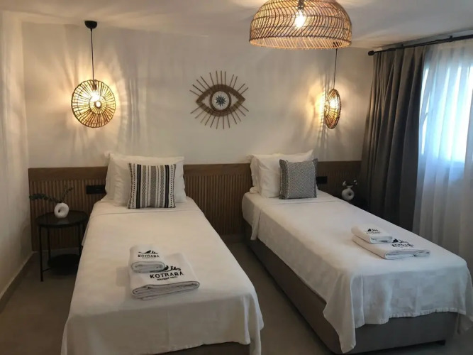 Подходящий вариант для бюджетного отдыха — отель «Kotraba Butik Hotel» расположен в Алачати. Этот отель находится 1 км от центра города. Рядом с отелем — Порт Хиос.