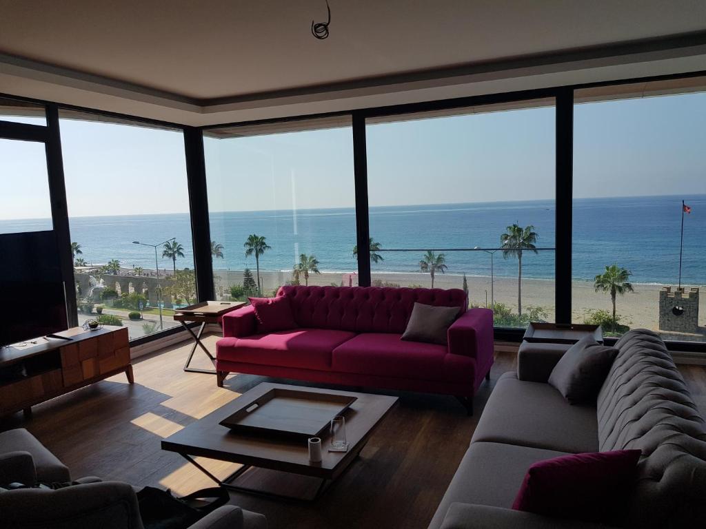 Подходящий вариант для большой компании: апартаменты «Arnelya Beach Penthouse 285m2» расположены в Алании. Эти апартаменты находятся в 8 км от центра города. Рядом с апартаментами — Маяк Аланьи, Кызыл Куле и Замок Алании.