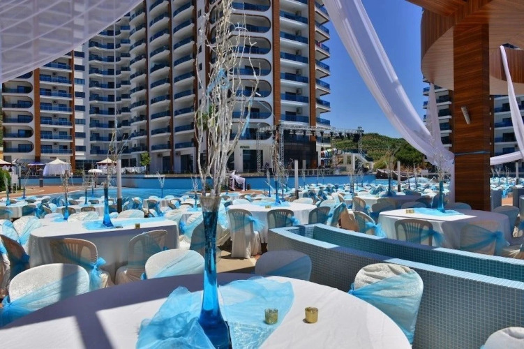 Отель Azura Park Residence 5 звезд, адрес на карте Аланья, Cumhuriyet Mah. Sarıhasan Sok. No:84, с описанием номеров и правом онлайн бронирования на площадке vashotel.ru , цены проживания и удобства.