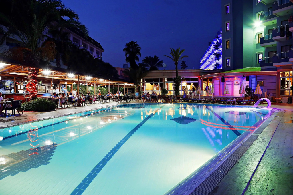Отель Caretta Beach Hotel 4 звезды, адрес на карте Аланья, Merkez Mah. Nergis Sok. No:5, с характеристиками номеров и доступностью онлайн бронирования на площадке vashotel.ru , стоимость проживания и удобства.