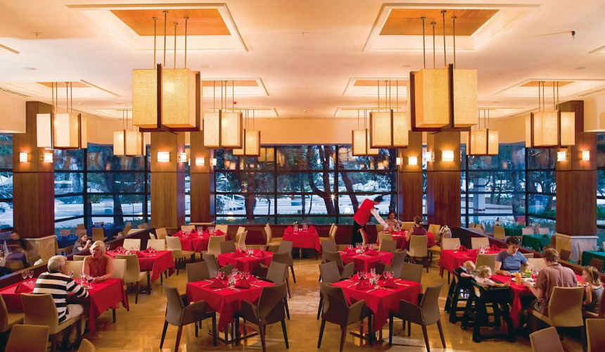 На территории отеля LykiaWorld Antalya открыты 6 баров. Гости могут посетиь один из 6 ресторанов, где подаются блюда турецкой, итальянской и восточной кухонь. Для детей предусмотрено специальное меню. Каждый вечер в отеле проходят концерты живой музыки.