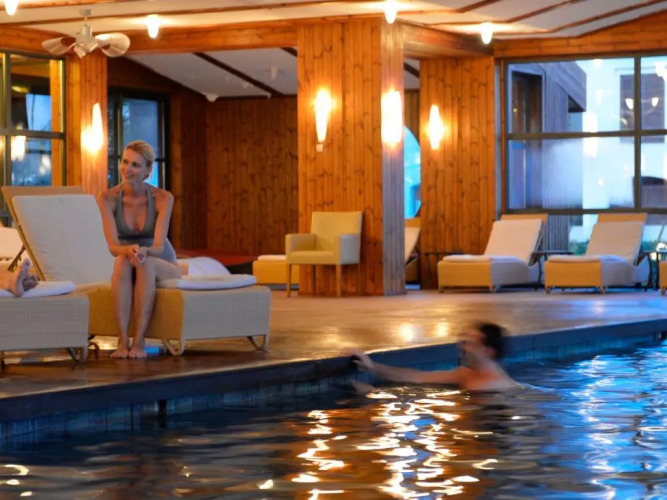 В отеле есть 1 открытый и 3 крытых бассейна. Гости отеля могут посетить аюрведический центр, сауну или турецкую баню. В отеле находится спа-центр, где предлагается полный спектр услуг, в частности процедуры ухода за телом и лицом, массажно-процедурные кабинеты и услуги салона красоты.