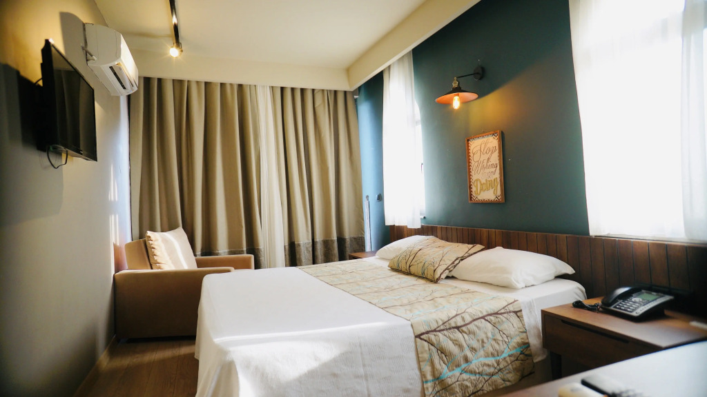 Чтобы вы могли отдохнуть после долгого дня, в номере есть телевизор, мини-бар и тапочки. Оснащение зависит от выбранной категории номера.