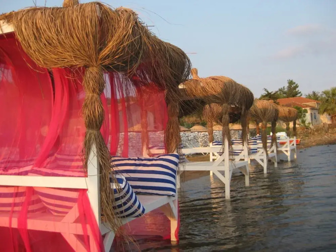 Подходящий вариант для бюджетного отдыха — отель «Bıyıklı Beach» находится в Айвалыке. Этот отель расположен в 9 км от центра города.