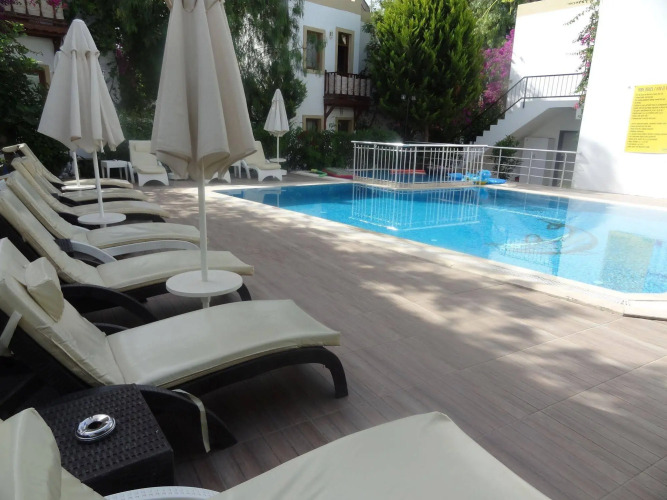 К услугам гостей частный пляж и открытый бассейн с пресной водой. Предоставляются бесплатные шезлонги, зонтики и пляжные полотенца. В 2 км находится район Гюмбет, который славится своими дискотеками и ночными клубами.