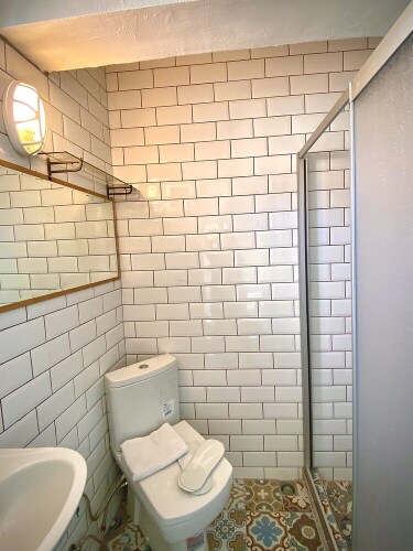 В номере вы найдёте душ, телевизор и тапочки. Оснащение зависит от выбранной категории номера.