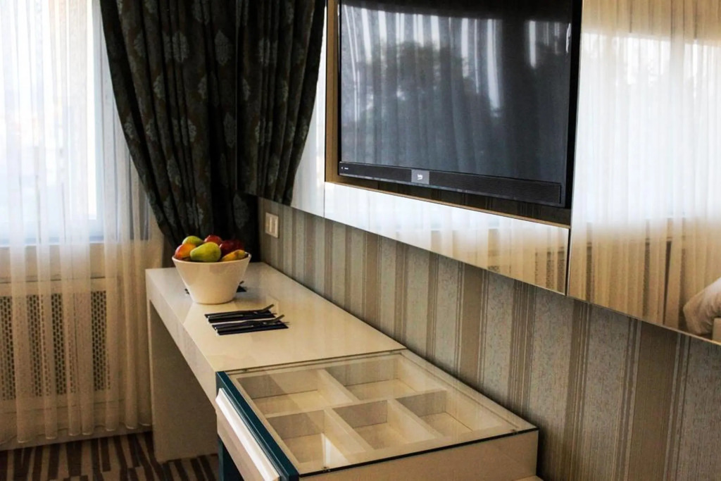 В номере вас будут ждать душ, телевизор, мини-бар и тапочки. Оснащение зависит от выбранной категории номера.