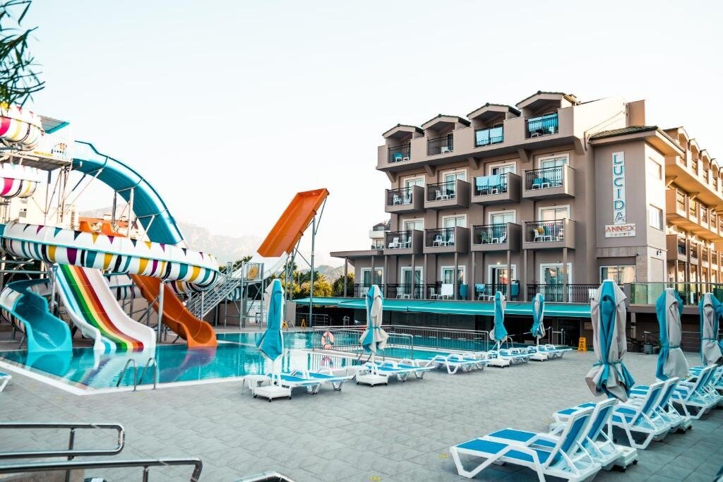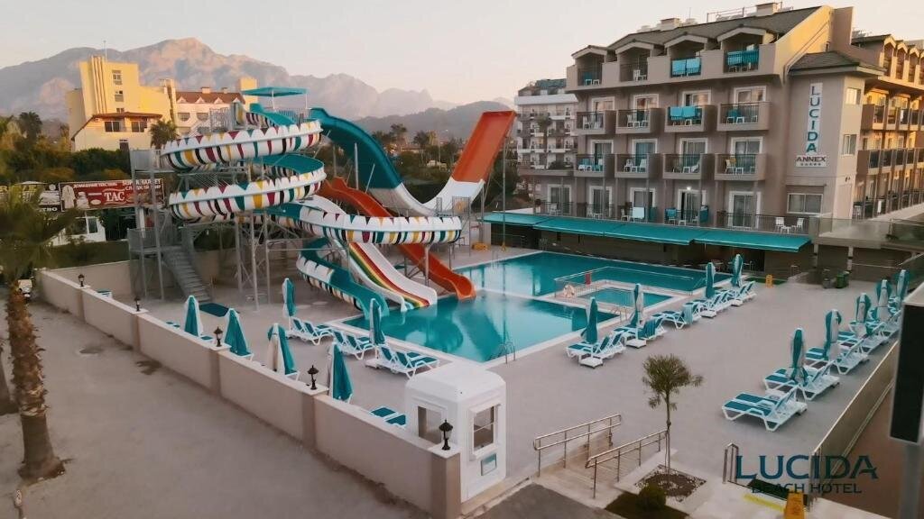 Из такого отеля на улицу можно вообще не выходить — отель «Lucida Beach Hotel» располагается в Чамьюве. Этот отель находится 1 км от центра города. Рядом с отелем можно прогуляться. Неподалёку: Аквапарк Долсу, Национальный парк Олимпос и Фазелис.