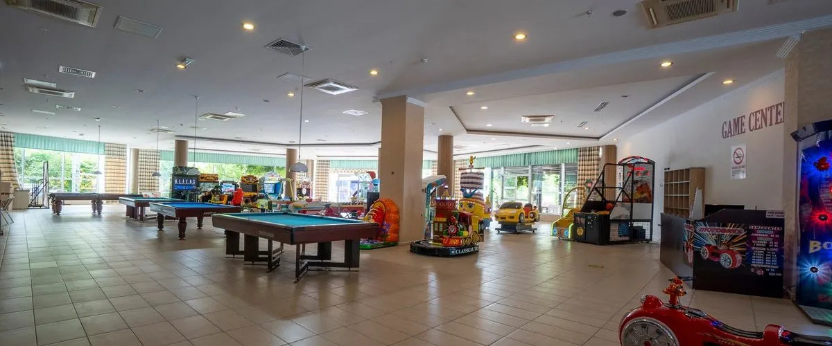 Также для гостей на курорте: массажный кабинет, сауна, спа-центр и врач. Любителям спорта подготовили фитнес-центр и тренажёрный зал. Готовьтесь к весёлому и насыщенному отдыху! На территории есть библиотека. Для тех, кто не представляет отдых без водных удовольствий, есть бассейн, крытый бассейн и открытый бассейн.