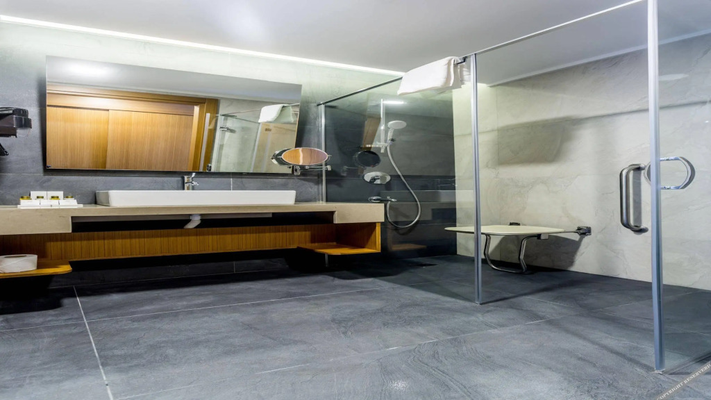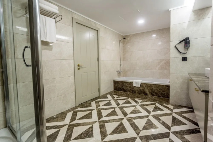 Номер уютно обставлен и оснащён необходимым, чтобы отдохнуть после долгого и насыщенного дня. Имеются душ, телевизор, мини-бар, халат и тапочки. Оснащение зависит от выбранной категории номера.