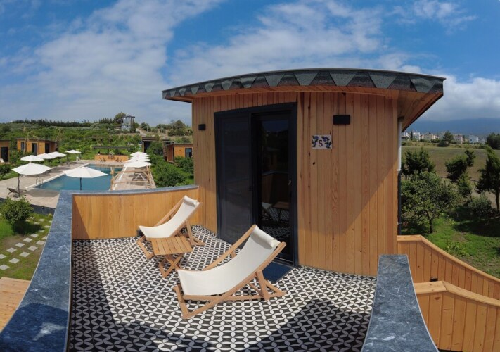 Отель Arsuz Bungalov & Tiny Houses, адрес на карте Арсуз, Sirataslar 3 Sokak No:20, с описанием номеров и возможностью онлайн бронирования на ресурсе vashotel.ru , стоимость проживания и удобства.