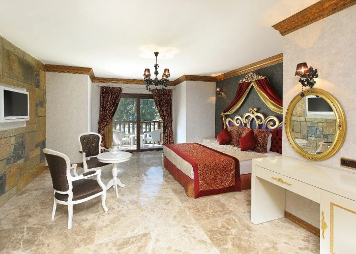 Номер уютно обставлен и оснащён необходимым, чтобы отдохнуть после долгого и насыщенного дня. Имеются телевизор и мини-бар. Оснащение зависит от выбранной категории номера.