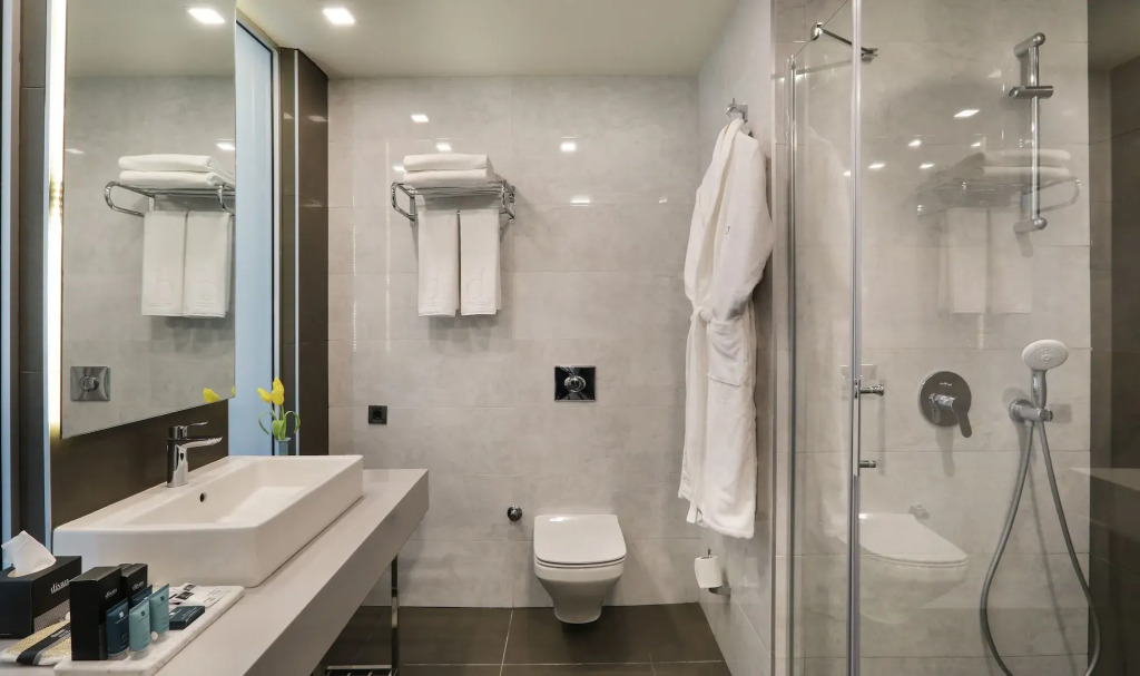 Номер уютно обставлен и оснащён необходимым, чтобы отдохнуть после долгого и насыщенного дня. Имеются будильник, душ, телевизор, мини-бар, халат и тапочки. Оснащение зависит от выбранной категории номера.