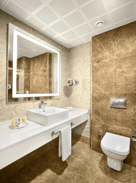 В номере вас будут ждать душ, телевизор, мини-бар и тапочки. Оснащение зависит от выбранной категории номера.