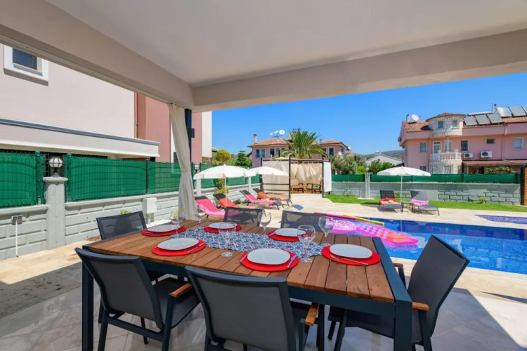 Отель Impressive Villa With Private Pool in Fethiye, адрес на карте Фетхие, Foça Mh. 1025. Sk. No:30 48300, с описанием номеров и правом онлайн бронирования на площадке vashotel.ru , цены проживания и удобства.