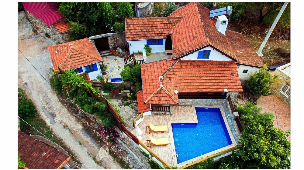 Отель Villa Huzur by Villatatilin, адрес на карте Фетхие, Fethiye Kayakoy 07000 Fethiye, с описанием номеров и возможностью онлайн бронирования на ресурсе vashotel.ru , стоимость проживания и удобства.