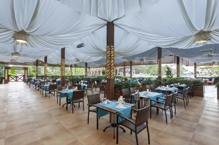 Попробовать новые блюда и отдохнуть можно в ресторане. Кафе курорта — удобное место для перекуса. На территории работает бесплатный Wi-Fi. Уточняйте информацию сразу при заезде. Если вы путешествуете на машине, припарковаться можно будет на парковке рядом.