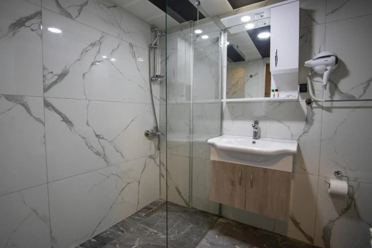 В номере вы найдёте телевизор. Оснащение зависит от выбранной категории номера.