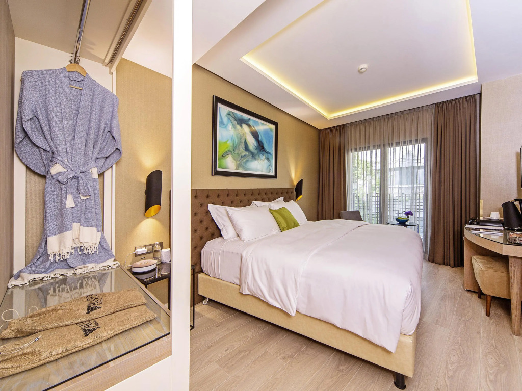 В номере гостей ждут душ, телевизор, мини-бар, халат и тапочки. Оснащение зависит от выбранной категории номера.