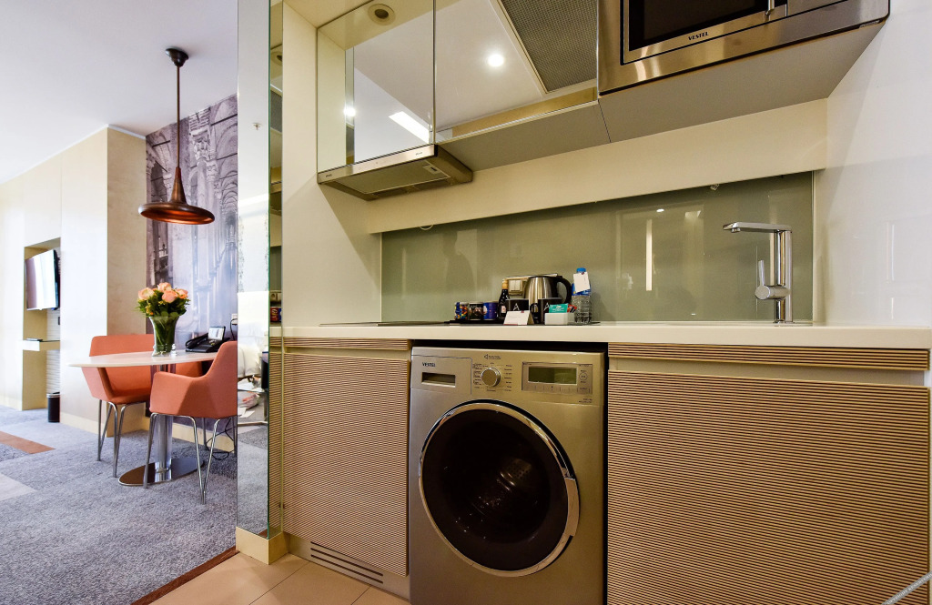 В номере вы найдёте будильник, душ, телевизор, мини-бар, халат и тапочки. Оснащение зависит от выбранной категории номера.