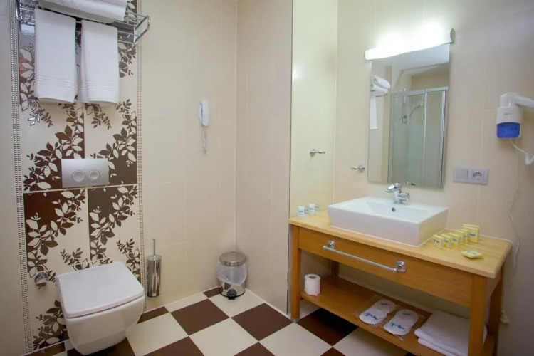 Номер уютно обставлен и оснащён необходимым, чтобы отдохнуть после долгого и насыщенного дня. Имеются душ, телевизор, мини-бар и тапочки. Оснащение зависит от выбранной категории номера.