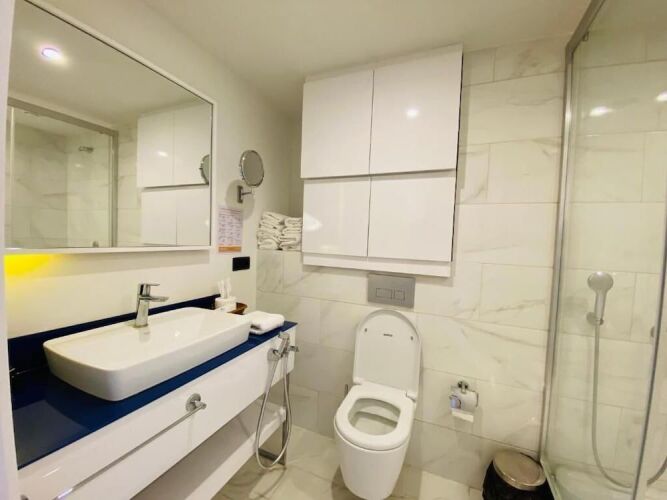 Номер уютно обставлен и оснащён необходимым, чтобы отдохнуть после долгого и насыщенного дня. Имеются телевизор, мини-бар и тапочки. Оснащение зависит от выбранной категории номера.