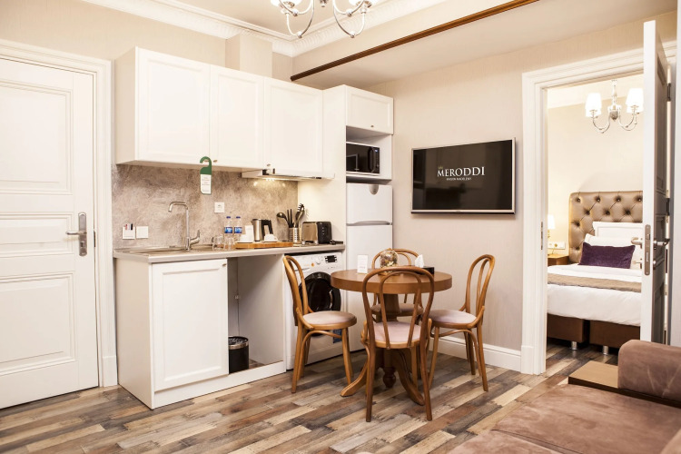 Место для отдыха после погони за впечатлениями! Отель «Meroddi Pera Flats» расположен в Стамбуле. Этот отель находится 2 км от центра города. Рядом с отелем можно прогуляться. Неподалёку: Шишхане, Галатская башня и Галатский мост.