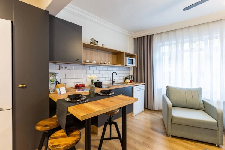 Отель Missafir Impressive Flat in the Heart of Cihangir, адрес на карте Стамбул, Firuzaga Hayriye Cd. No:20 34425, с описанием номеров и доступностью онлайн бронирования на сайте ВашОтель.RU , стоимость проживания и удобства.