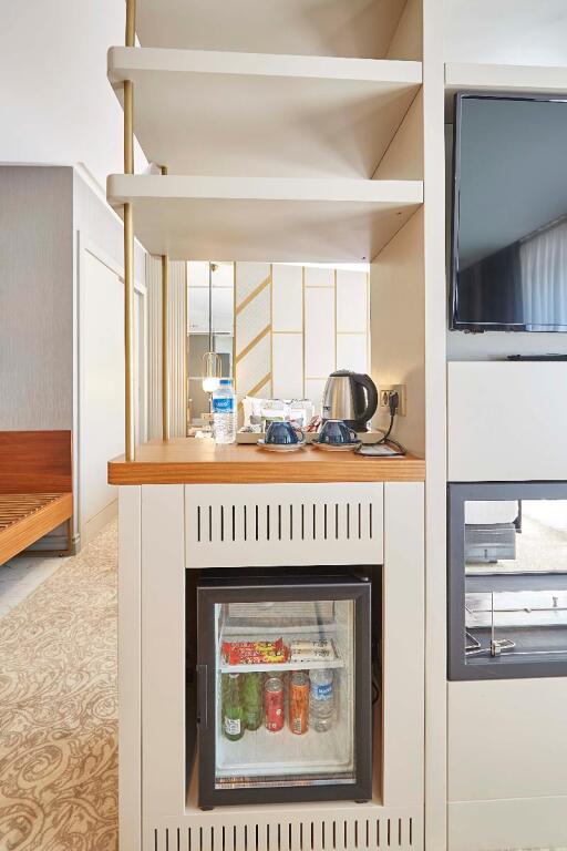В номере вы найдёте телевизор и мини-бар. Оснащение зависит от выбранной категории номера.