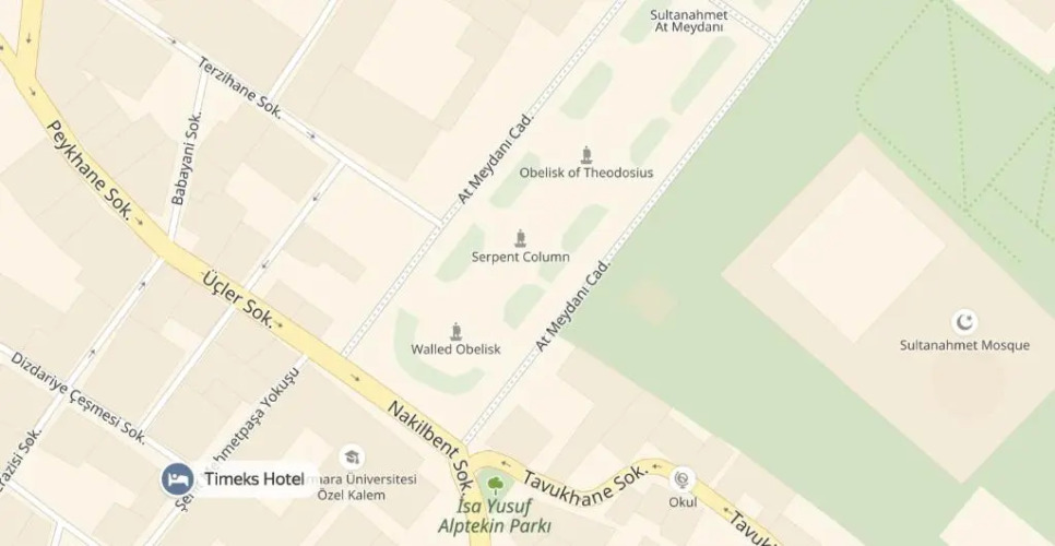 Бюджетный вариант для активного отдыха — отель «Timeks Hotel Sultanahmet» находится в Стамбуле. Этот отель расположен 1 км от центра города. Рядом с отелем — Ипподром, Голубая мечеть и Цистерна Базилика.