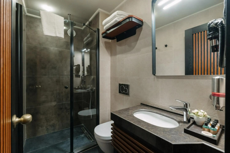 В номере вас будут ждать телевизор, мини-бар, халат и тапочки. Оснащение зависит от выбранной категории номера.