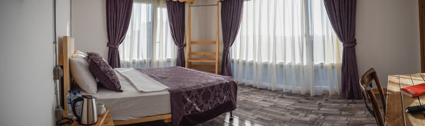 Номер уютно обставлен и оснащён необходимым, чтобы отдохнуть после долгого и насыщенного дня. Имеются душ, телевизор, мини-бар и тапочки. Оснащение зависит от выбранной категории номера.