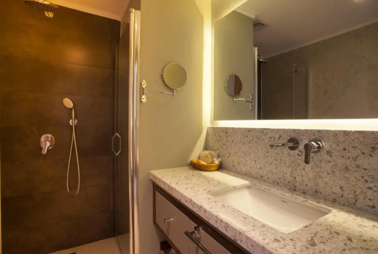 Среди услуг для красоты и здоровья — сауна и спа-центр. Здесь будем баловать себя водными процедурами: есть бассейн и открытый бассейн. Доступная среда: работает лифт. Дополнительно: прачечная, химчистка, пресса, сейф и консьерж.