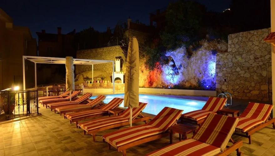 Отель Villa Bortecine, адрес на карте Кас, Kalkan Mahallesi, с описанием номеров и правом онлайн бронирования на ресурсе vashotel.ru , стоимость проживания и удобства.