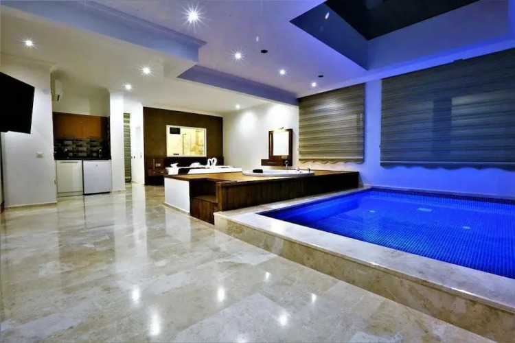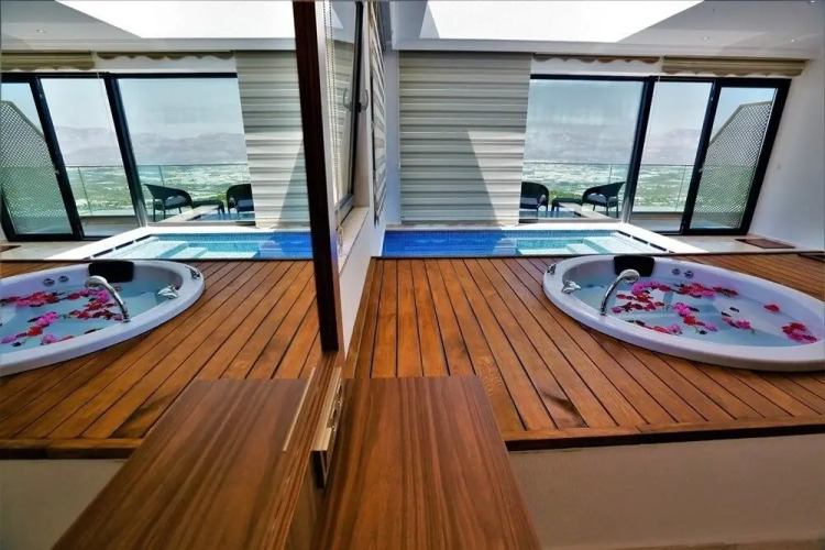 Отель Villa Camli by Akdenizvillam, адрес на карте Кас, Islamlar Mah Kalkan, с характеристиками номеров и правом онлайн бронирования на ресурсе vashotel.ru , стоимость проживания и удобства.