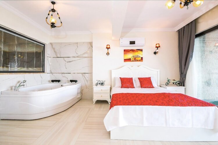 Отель Villa Spring, адрес на карте Кас, Kalkan Mahallesi, с характеристиками номеров и возможностью онлайн бронирования на сайте vashotel.ru , стоимость проживания и удобства.