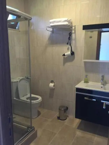 В номере вы найдёте душ, телевизор и тапочки. Оснащение зависит от выбранной категории номера.