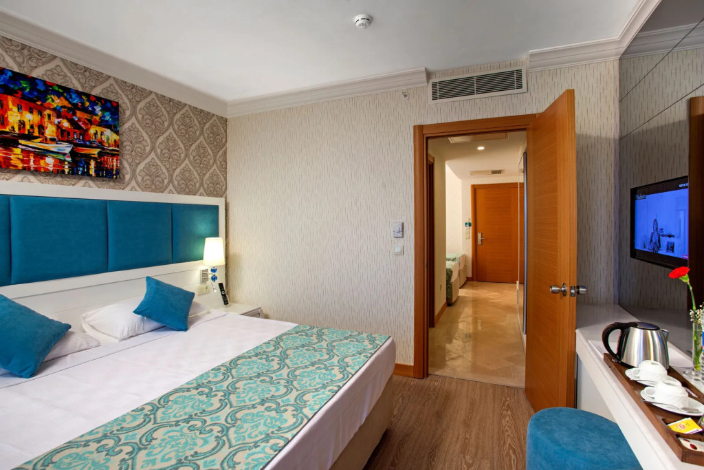 В номере вас будут ждать душ, телевизор, мини-бар, халат и тапочки. Оснащение зависит от выбранной категории номера.