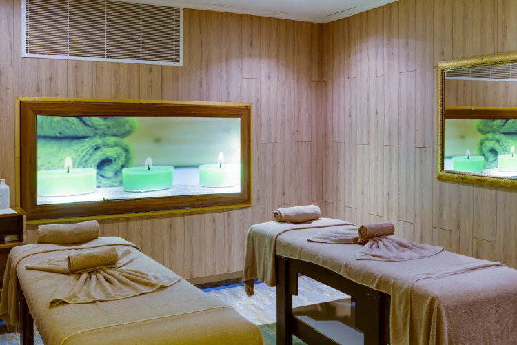 Для путешественников на машине организована бесплатная парковка. Если вы путешествуете на машине, припарковаться можно будет на парковке рядом. Также для гостей в отеле: массажный кабинет, сауна, паровая баня, спа-центр и врач. Любителям спорта подготовили фитнес-центр, тренажёрный зал, настольный теннис и дайвинг.