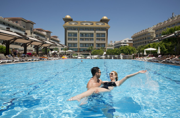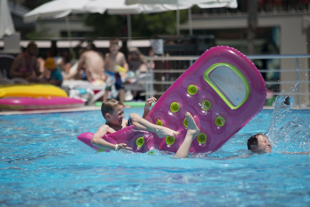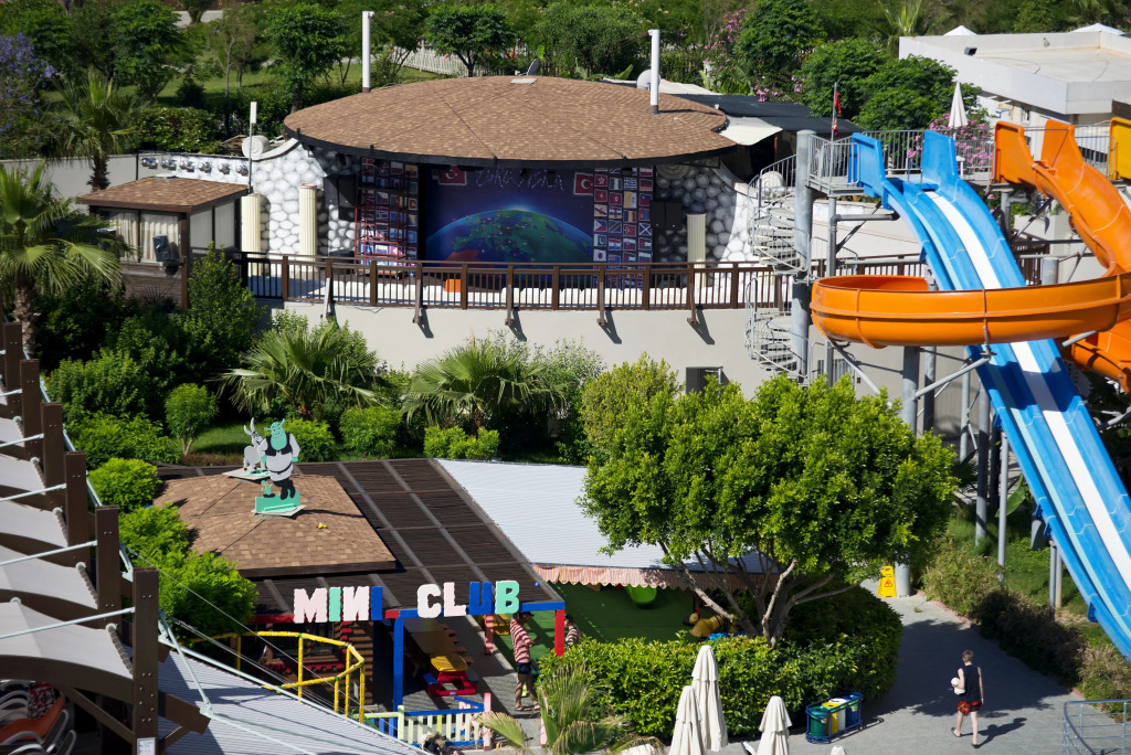 Готовьтесь к весёлому и насыщенному отдыху! На территории есть боулинг, пинг-понг и площадка для барбекю. Для тех, кто не представляет отдых без водных удовольствий, есть бассейн, аквапарк и открытый бассейн. Дети будут рады! Работает детская игровая комната. Чтобы забронировать экскурсию, обратитесь в экскурсионное бюро курорта.